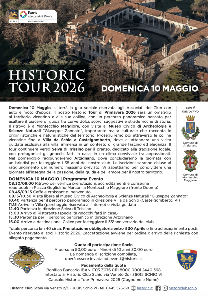 HISTORIC CLUB SCHIO è un club che riunisce quanti posseggano o siano semplicemente appassionati di veicoli d’epoca.